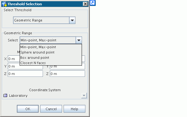 下面提供球阈值选择选项的示例。 透明球体不会显示在图形窗口中;为了进行说明,已添加此透明球体。