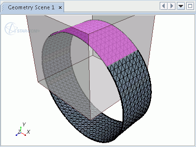 下面提供选择选项的示例。 本示例展示距离用户自定义的参考点最近的 25 个面。 表示点的球体不会显示在图形窗口中;为了进行说明,已添加此球体。