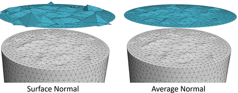 | O 型网格 | 对于 O 型网格选项(默认打开),表面拉伸网格生成器将计算相邻相连部件表面之间的公共节点处的平均法向(使用奇异值分解找到)并沿平均法向生成层。![]() |