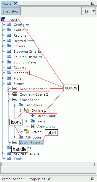 可以通过单击节点图标左侧的图柄来展开或折叠节点。 Simcenter STAR-CCM+ 提供了键盘快捷键来执行相同操作:<向左> 箭头关闭节点,<向右> 箭头打开节点。 将 <Ctrl> 添加到任一操作会将命令应用于所有子节点及其后代。