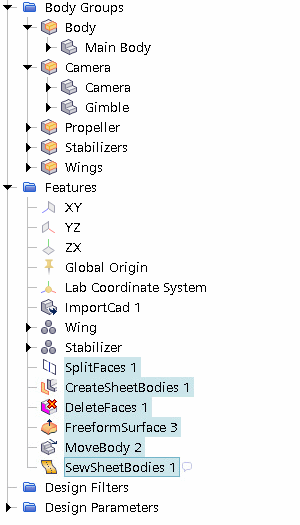 将机头与机身的其余部分分离后,接下来需要将机头与摄像机圈分离。为此,为机头表面创建片体。