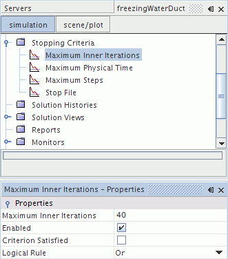 将融化和凝固的“流体停止相对固体分数”属性作为阶跃函数来实施。因此,包含液态 H2O 的网格单元需要少量的内部迭代来了解新冻结的网格单元中的速度为零这一情况。此流程是动态的,许多网格单元可以在一个时间步的后续迭代中“冻结”。因此,需要许多内部迭代来确保结果准确。
