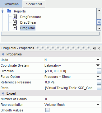 在总阻力 - 属性窗口中,将力选项设为压力 + 剪切力。
