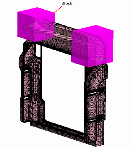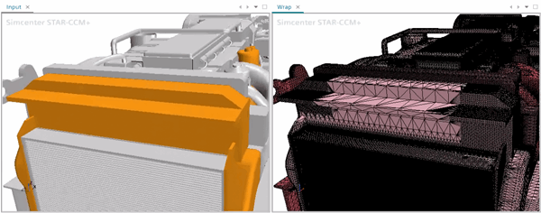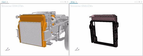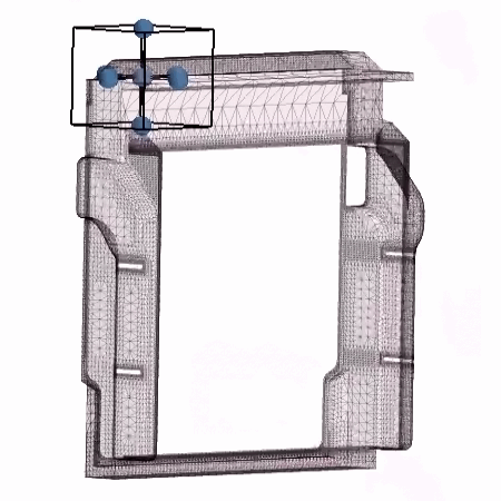 应使用自定义控制设置对散热器罩体周围的两个位置重新包面。然后,局部包面的结果将缝合为原始全局包面。