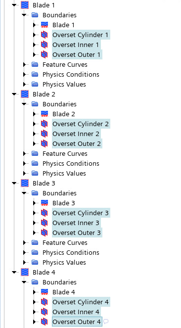 - Expand the Boundaries node for each blade region and multi-select all four Blade boundary nodes.