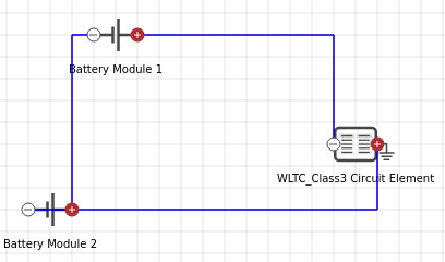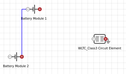 使用电路编辑器创建连接以并联两个模组,并使用表对电池包运行全球统一轻型车辆测试循环 (WLTC)。