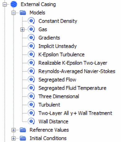- 创建物理连续体并将 节点重命名为 External Casing。