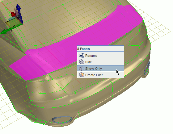 为此,可以选择几何上的相关面,右键单击所选项并选择仅显示。
