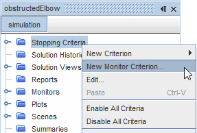 为模拟设置适当的求解器参数和停止条件。 基于连续性方程残差创建新的停止条件,并将其最小容差设置为 1E-4。