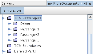 TCM 乘客管理器包含车辆中每位乘客的子节点,由向导定义。 这些子节点是乘客特性的占位符,显示在属性窗口中。