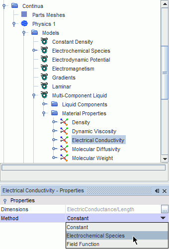 使用电动势模型时,要以一致的方式设置需要电中和的应用,将导电率方法指定为电化学组分。