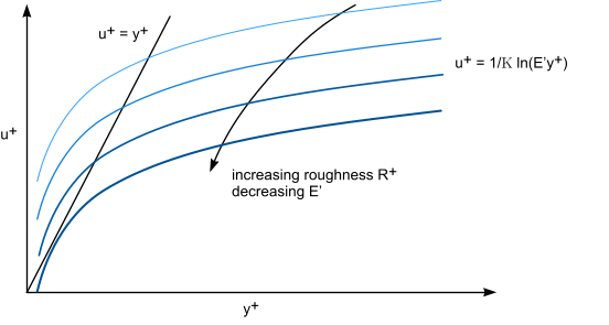 粗糙位移原点方法使用名为原点位移的模型([389]、[393])。此模型将使粗糙度高度上方的边界层原点移位,并对速度、温度、湍流耗散率和比耗散率使用特定的壁面函数。