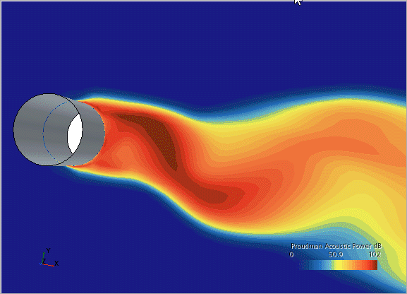 创建标量场景以在对称平面上显示 Proudman 表面声功率。此模型可指示四极声源。