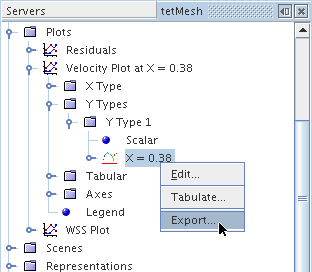 导出模拟数据 将速度图中的数据导出至文件,以便与本教程其他部分中生成的类似数据进行比较: 选择绘图 > X = 0.38 时的速度图 > Y 类型 > Y 类型 1 > X = 0.38 节点,然后启用对图表数据排序选项。 右键单击其中的 X = 0.38 节点并选择导出。 在保存对话框中,输入 tet380 作为“文件名”,然后单击保存。 现在,本教程的四面体网格部分完成。 关闭模拟。
