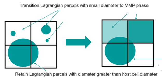 - Creates a new user defined criterion for the transition of small (sub-grid) Lagrangian parcels to an MMP phase.