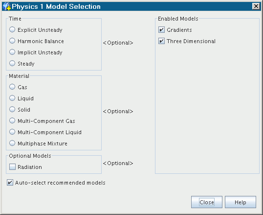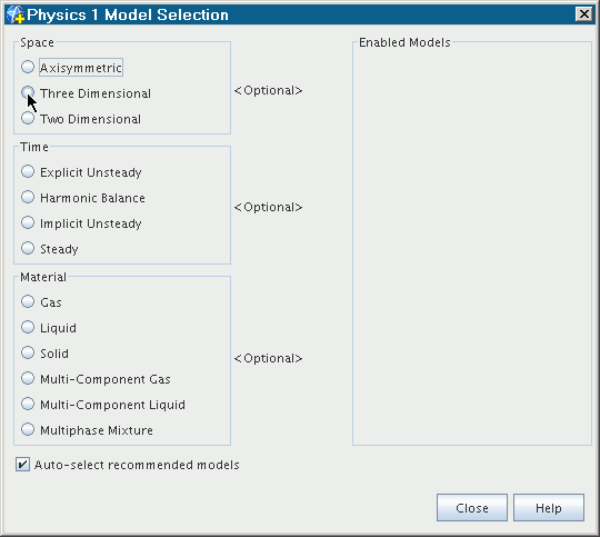 此命令可打开模型选择对话框。通过单击相关的单选按钮为模拟选择正确的空间模型。