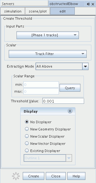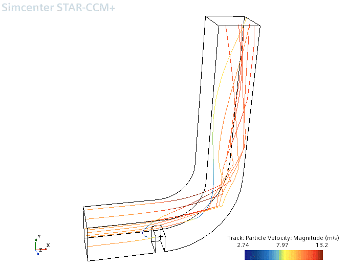此时,标量场景 1 显示已过滤的颗粒轨迹集。