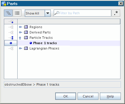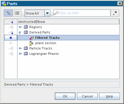 在存在许多颗粒轨迹的模拟中,可能只需要使用其中一小部分在图形场景中绘图。可创建场函数来过滤可用的轨迹,并在衍生零部件中应用该过滤器。