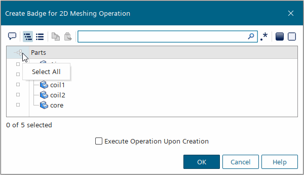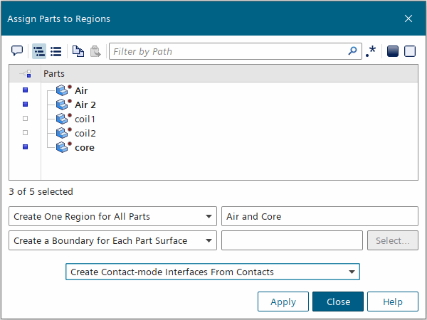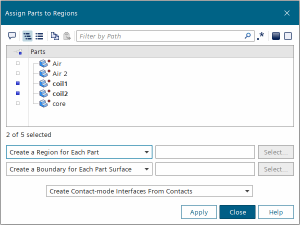 由于几何是轴对称的,因此可以为此模拟准备二维网格。此外,由于在此模拟中忽略了流体效应,因此可以将空气和涡芯零部件分配给同一区域。