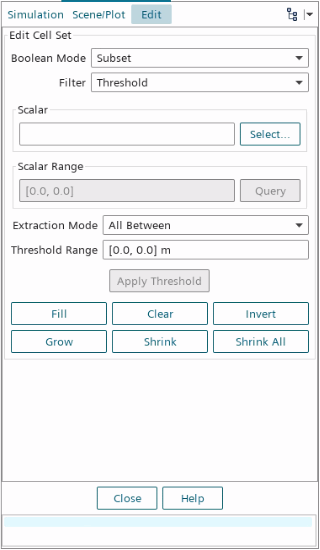 要执行布尔操作(例如,“子集”、“添加”、“移除”或“替换”),选择相应的布尔模式选项。过滤器选项将确定是使用“网格单元列表”、“阈值”还是“区域”。根据后一个选项,Filter Options(过滤器选项) 组合框将显示相应的选项以完成操作。按应用以执行更改。