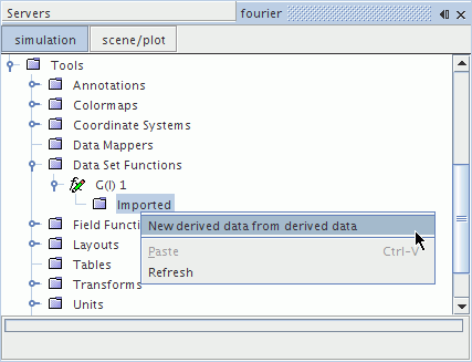 通过输入数据集计算线性时间傅立叶变换之前,在变换的子节点下创建衍生数据集: