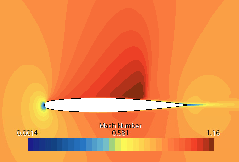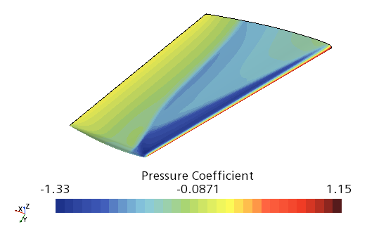 压力系数场景显示了机翼上表面上的 Lambda 形成。