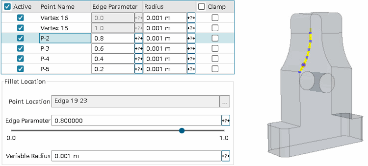 如果您在某个边上定义一个控制点,但您想要查看没有该控制点时圆角的外观,可以停用而不删除该控制点。