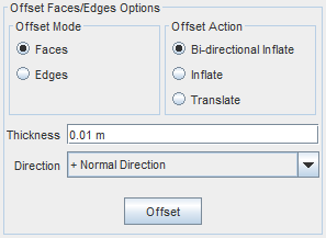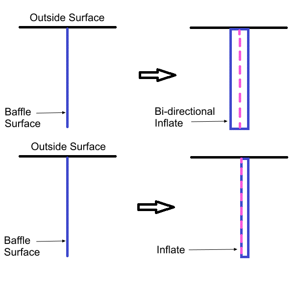 在面模式下,将膨胀表面,以使它们具有厚度,通常是表示挡板或内壁的表面。 它还可以平移或拉伸表面,移动其位置,同时保持与相邻表面的连接。