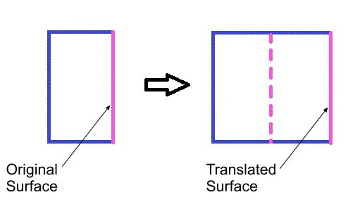 如果将偏移操作设为平移,则能够以指定的方向和厚度移动选定的表面或边,并保持现有的连接。