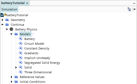 节点将显示在 Simcenter STAR-CCM+ 特征树中。主要在此节点下执行电池预处理。