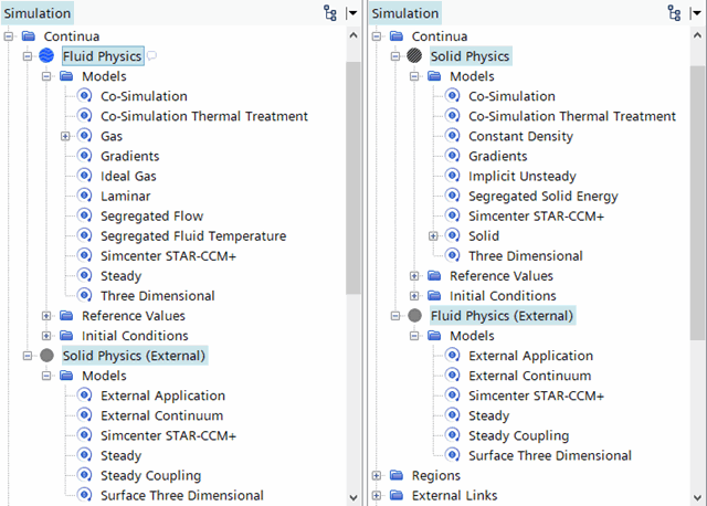开发独立的 Simcenter STAR-CCM+ 模拟,不进行任何协同仿真设置。在每个模拟中,根据分析需要激活物理模型: