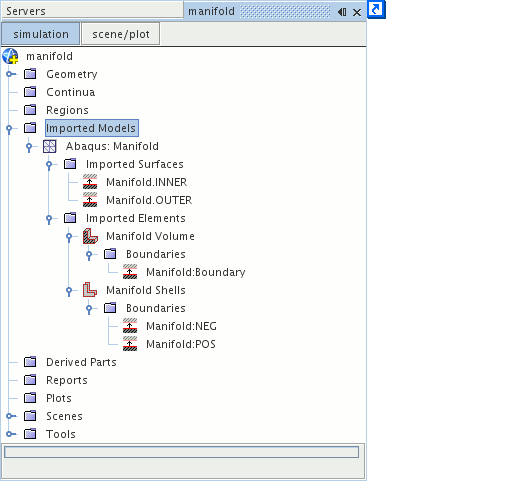 在模拟中导入的每个 CAE 模型均由导入的模型节点内的节点表示。 这些导入的 CAE 模型节点位于导入的模型节点内,为基于文件的耦合提供了交界面。
