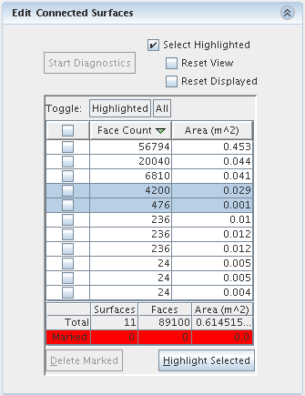 要使用总结表选择表面,应先生成相连表面诊断。 然后激活选择高亮显示内容选项,这会在图形窗口中高亮显示选定的表条目。