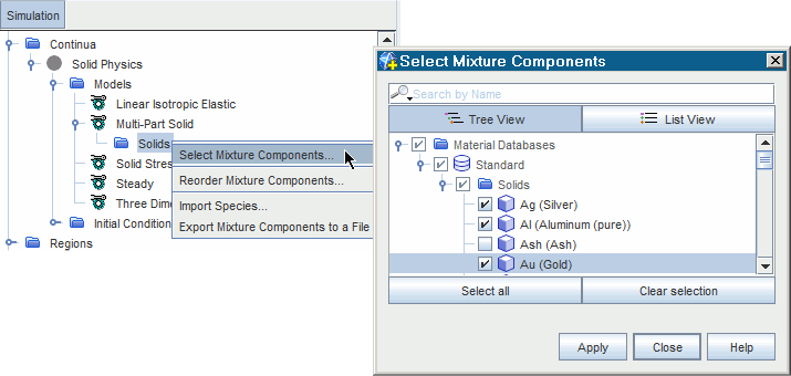 - 从 Simcenter STAR-CCM+ 材料库中选择固体材料: