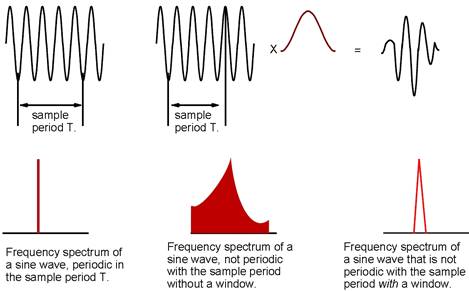 The problem of discontinuities at the edge can be alleviated either by ensuring that the signal and the sampling period are synchronous or by ensuring that the function is zero at the start and end of the sampling period. This latter situation can be achieved by applying what is called a 'window function' which normally takes the form of an amplitude-modulated sine wave.