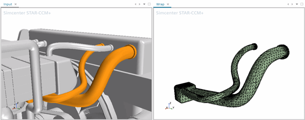 在 Wrap(包面) 场景中,右键单击散热器软管,然后选择选择继承自以选择与原始输入零部件对应的零部件表面。