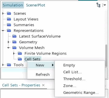 无论先前生成的网格单元集如何,每个新网格单元集都基于模型中的所有网格单元创建。对于网格单元列表和阈值选项,将显示一个对话框窗口,其中包含可用于创建网格单元集的适当选项;而区域和几何范围选项则可用于手动选择相关网格单元的区域或方块。但是,在所有四种情况下,系统均会提示如何将新的网格单元集零部件添加到当前场景以便显示。