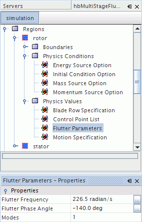 在区域的节点的属性中,可指定颤振参数。