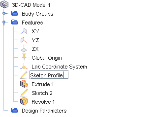 可以重命名 3D-CAD 特征树中的大多数特征节点。此功能对于包含许多特征的复杂模型十分有用。