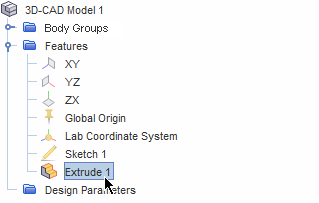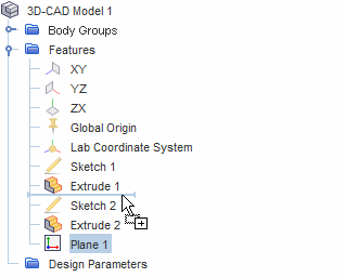 可以对特征树中特征的位置重新排序。依赖于另一个特征的特征不能移动到所依赖的特征之前。一次只能对一个特征重新排序。