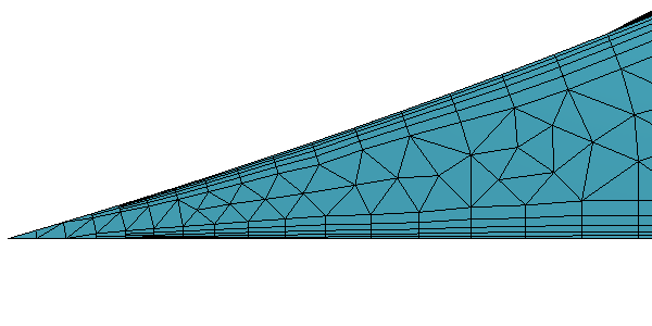 生成棱柱层网格时,由于角、缩窄的间隙、弯曲表面或其他局部几何的原因,网格生成器需要减少棱柱层的总厚度。在此类情况下,最好随着厚度的降低减少局部的层数,使剩余棱柱层网格单元保持较低的长宽比(从而提高质量)。层减少百分比属性用于控制何时减少折叠棱柱层内的层数。