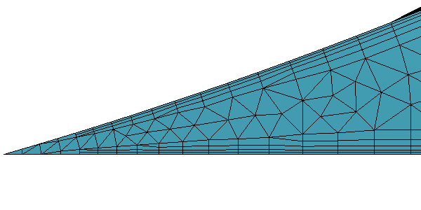 在上述示例中,未应用任何层减少(即,层减少百分比 = 0)。由于子表面网格在靠近斜角时变薄,因此棱柱层同样逐渐变薄,最终在子表面网格高度缩减为零时截断(取决于最小厚度值)。