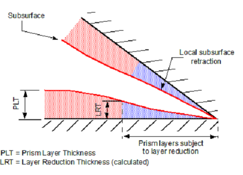 在上图中,与蓝色阴影区域对应的棱柱层数将根据层减少厚度值(如图上所绘制)减少。当此值增大时,减少过程将应用于棱柱层的更多区域。