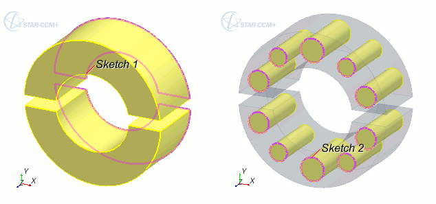 - 对于包含两个闭合轮廓的草图实体,一个轮廓必须完全被另一个轮廓封闭。不能为一个拉伸定义两个以上的闭合轮廓。
