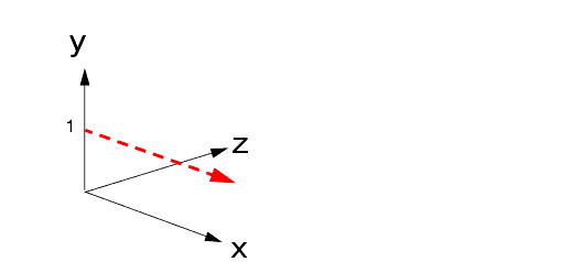 使用轴方向和轴原点分量指定旋转轴。 对于下例,假设要围绕红色虚线轴旋转,轴方向分量将为 [1,0,0],且轴原点分量将为 [0,1,0]: