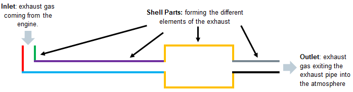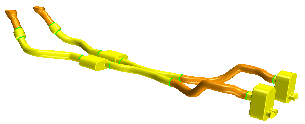 After preparing the CAD mode, you create attached shell parts from the solid bodies of the exhaust pipe. When you generate the mesh, Simcenter STAR-CCM+ creates a single-cell layer for the shell parts.