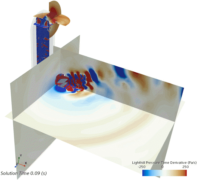 以下屏幕截图显示了 Lighthill 压力时间导数: