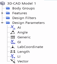 用户自定义的设计参数的图标以黑色显示。间隔参数的图标以蓝色显示。