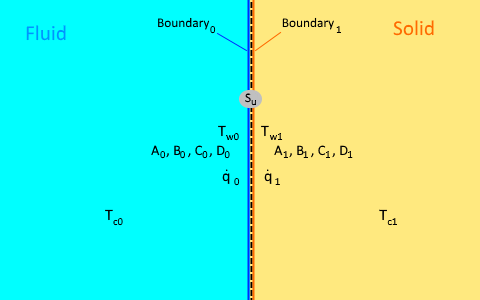 - , are the interface temperatures on the fluid side (Boundary0) and on the solid side (Boundary1) respectively.