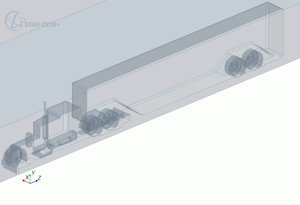 在以下 3D-CAD 视图场景中,原始流体域、卡车和拖车已隐藏。场景透明度也已激活。